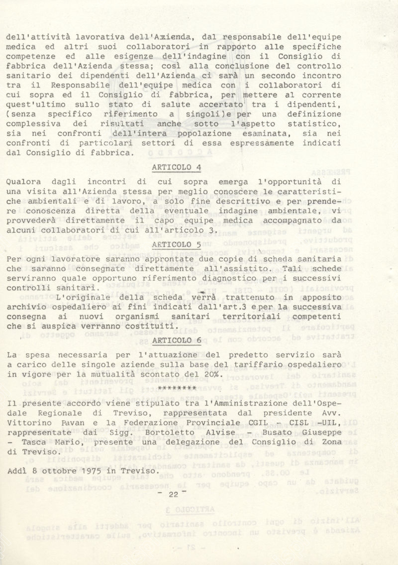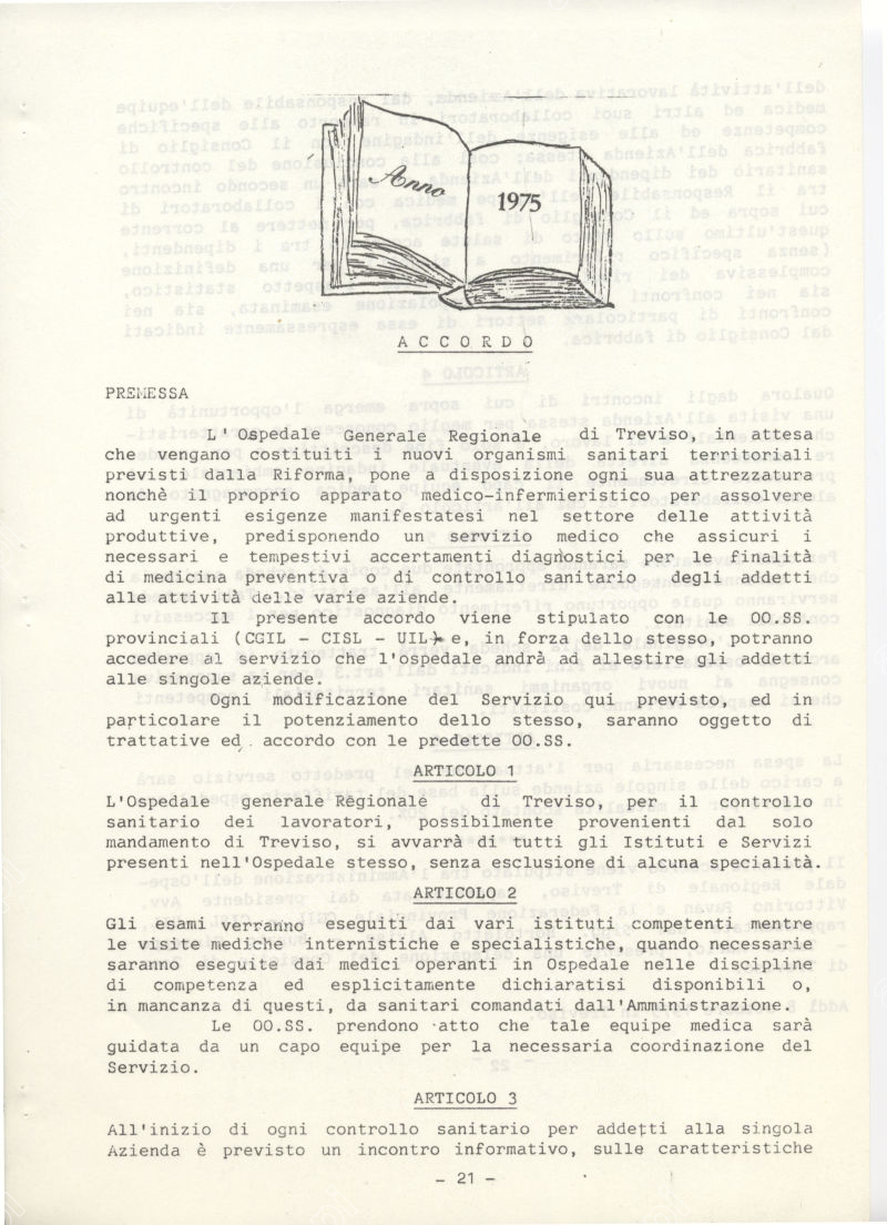 Accordo stipulato dalla Federazione unitaria (CGIL CISL UIL) Provinciaale di Treviso e L'Ospedale Regionale di Treviso